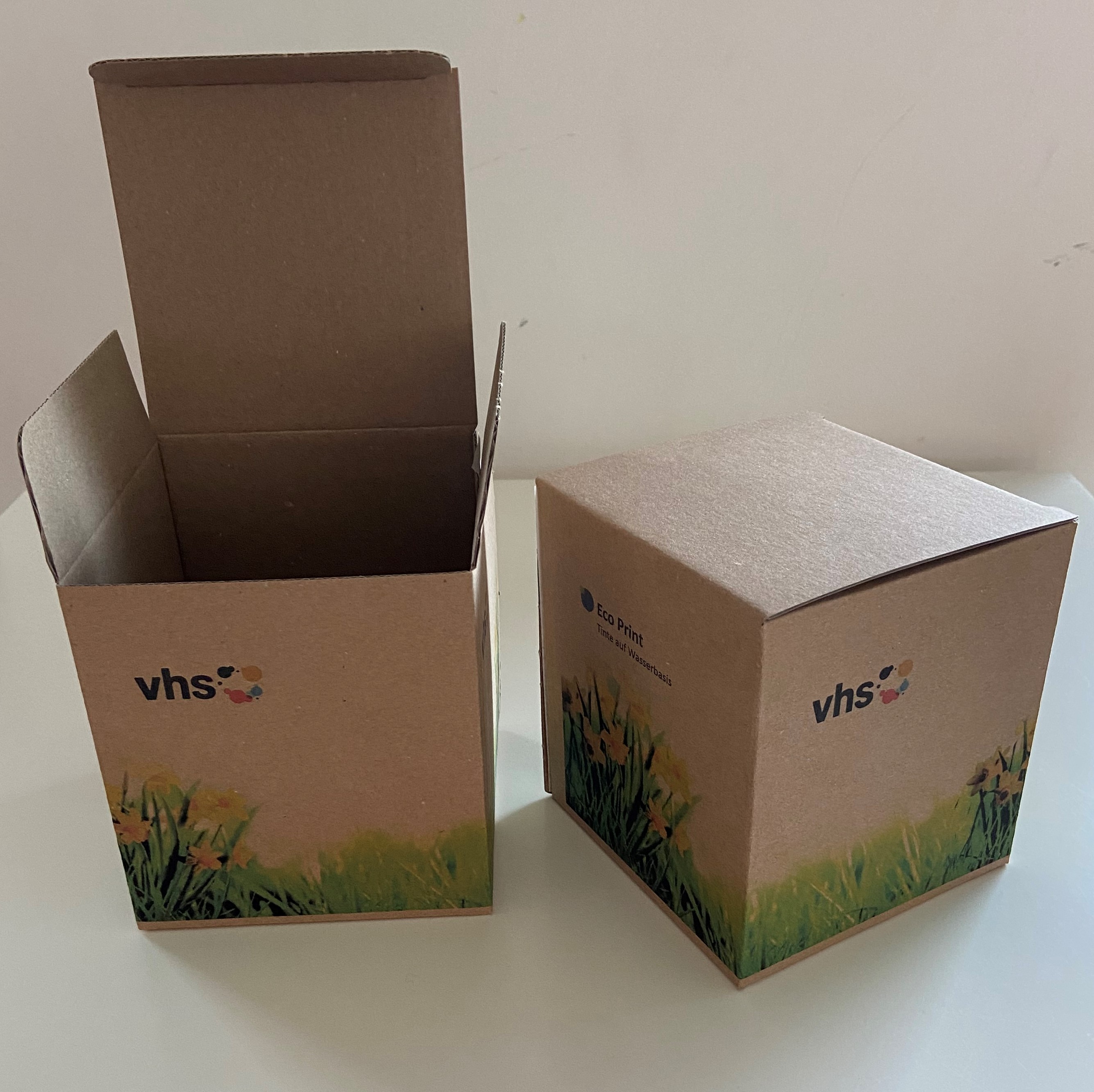 Geschenkbox aus Karton mit Eco-Aufdruck, die Tinte ist auf Wasserbasis. Hergestellt in Europa und FSC-zertifiziert. Die Box eignet sich hervorragend für Tassen. Maße: 10,2 x 10,2 x 11,2 cm, plano geliefert. Auch im Set mit Tasse erhältlich.